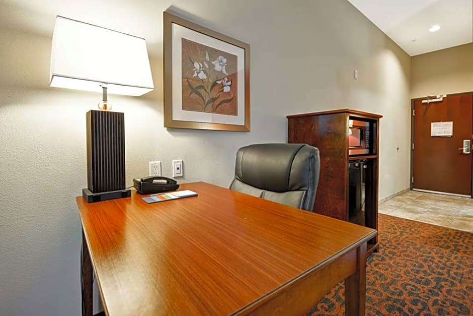 Any corresponding photo may not reflect the specific accessible room type or room feature. This mobility and hearing accessible, two-room, non-smoking suite features one king-sized bed, and an accessible roll-in shower. The suite also has a visual alarm and notification devices for the doorbell or door knock and incoming phone calls. The room features include a microwave, refrigerator, comfortable soft seating, a HDTV, and easy to operate alarm clock/radio. The free high-speed internet access will help you stay connected while on the road. If you prefer not to work at the desk, you can use the convenient lapdesk instead. You'll also enjoy the convenience of having a coffeemaker with tea service and iron/ironing board in your room.